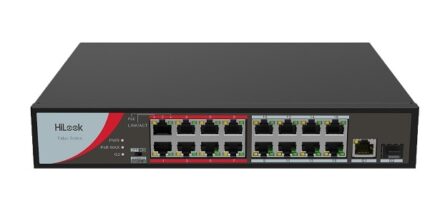 - Switch no administrado con 24 puertos PoE de 100 Mbps, 1 puerto RJ45 de 1000 Mbps y 1 puerto SFP de 1000 Mbps